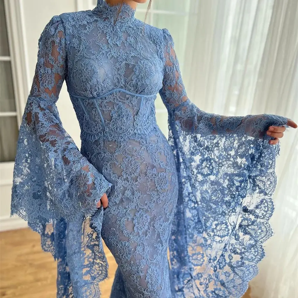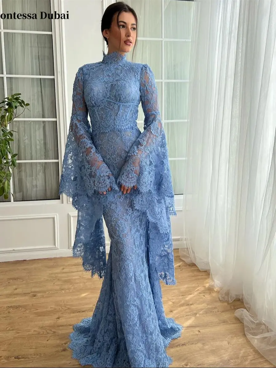 Contessa Dubai customized High neck flared sleeve Prom Dresses elegant Lace vestidos de noche Floor-Length Formal Evening 2025