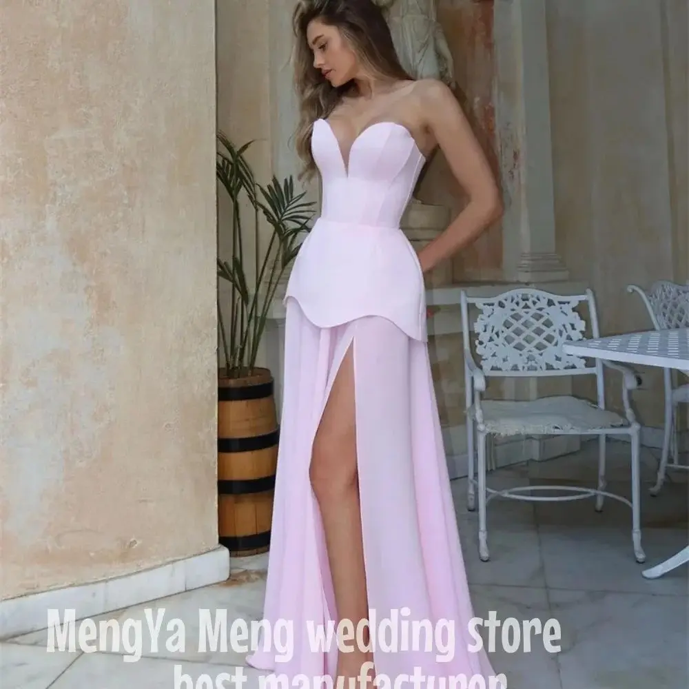 ZHUISHU High Quality Customized V-neck Pink High Fork Floor Length Sleeveless Vestidos Para Bodas Mujer Invitada Evening dress